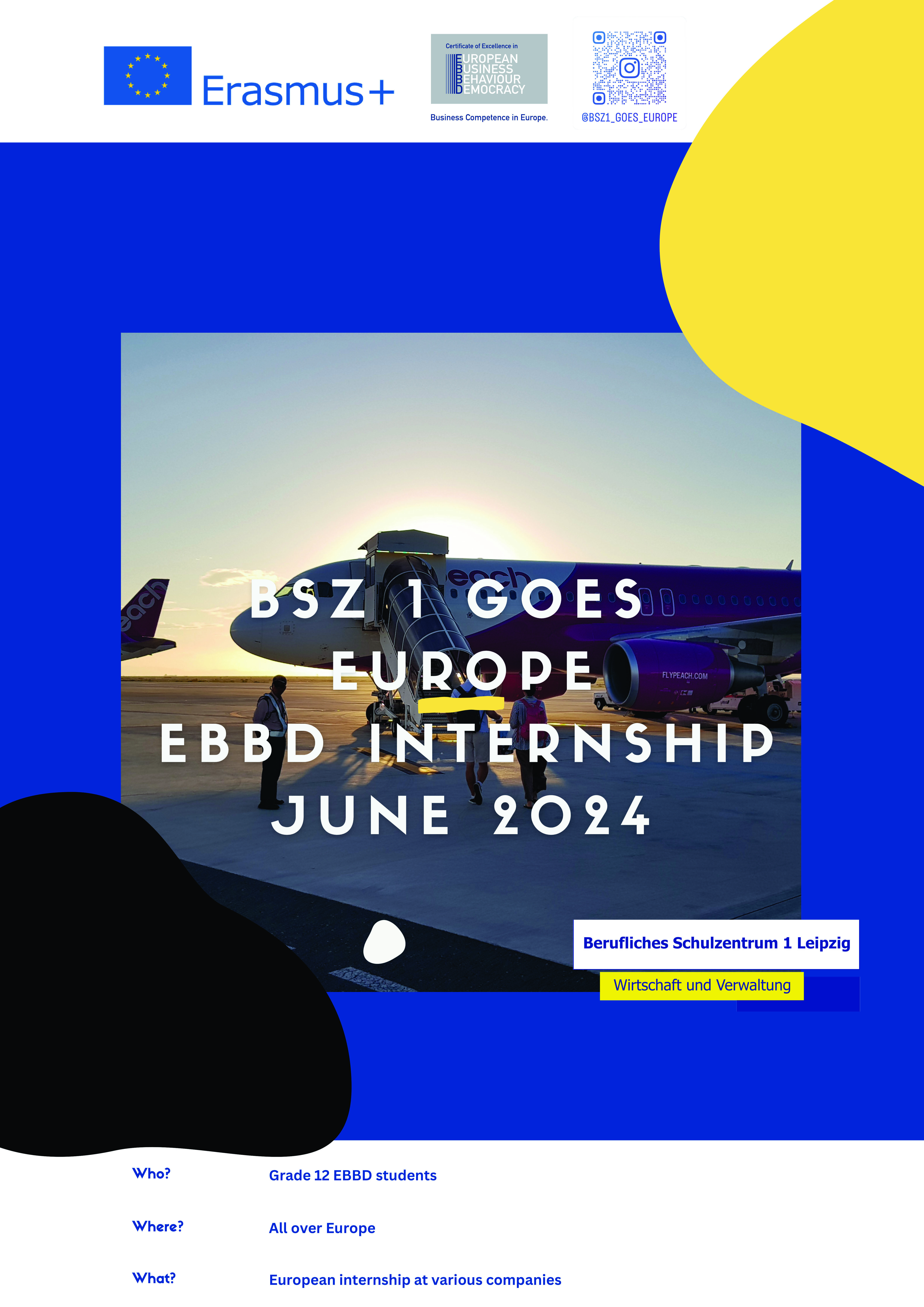 Unter dem Motto "Learn Europe - Go Europe - Be Europe" beteiligt sich das Berufliche Schulzentrum 1 Leipzig am Erasmus+-Programm. Dieses EU-Programm fördert beispielsweise Schüler- und Lehreraustausche sowie Auslandspraktika unserer Auszubildenden.